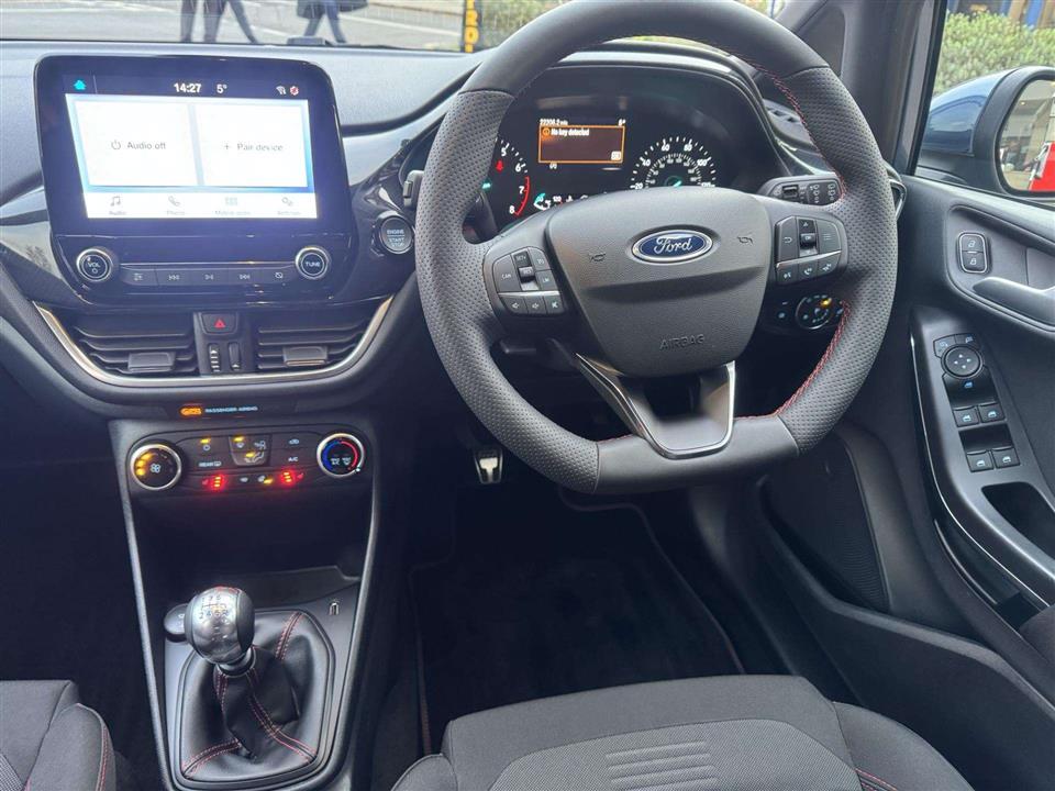 This 2023 Ford Fiesta ST-Line is a superb example, boasting a full Ford service history from its single private owner. This stylish hatchback features a responsive 1.0L petrol engine, meeting Euro 6 emissions standards. Inside, you'll find comfort and convenience with the Winter Pack, which includes heated seats and a heated steering wheel, alongside manual air conditioning. The ST-Line Design Pack enhances its sporty appeal with Red inserts on the seats, while LED headlights with integrated daytime running lights and fog lights ensure excellent visibility. Connectivity is seamless thanks to Ford SYNC2.5, offering Android Auto and Apple CarPlay for easy access to your smartphone apps. So why not give our family run dealership a call on 01628 894180 to book a test drive?