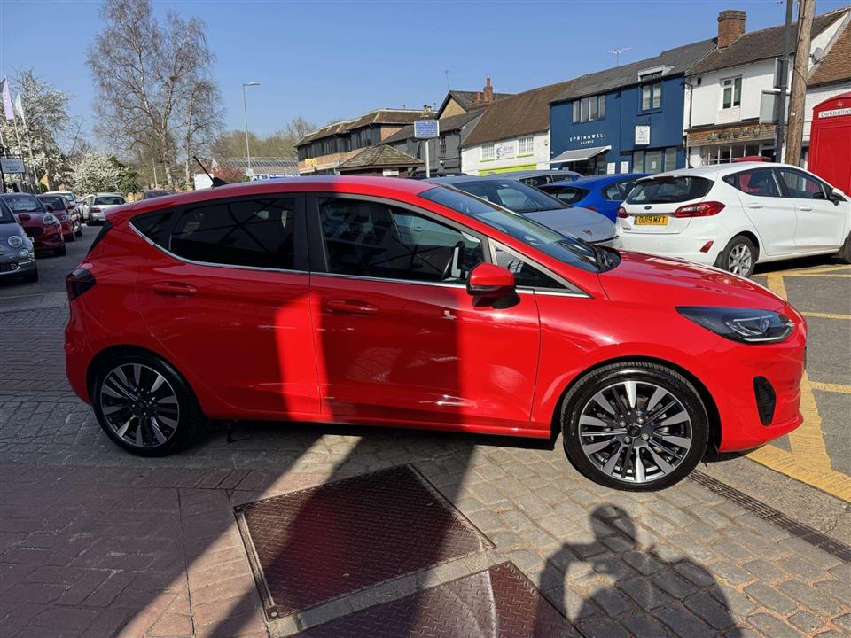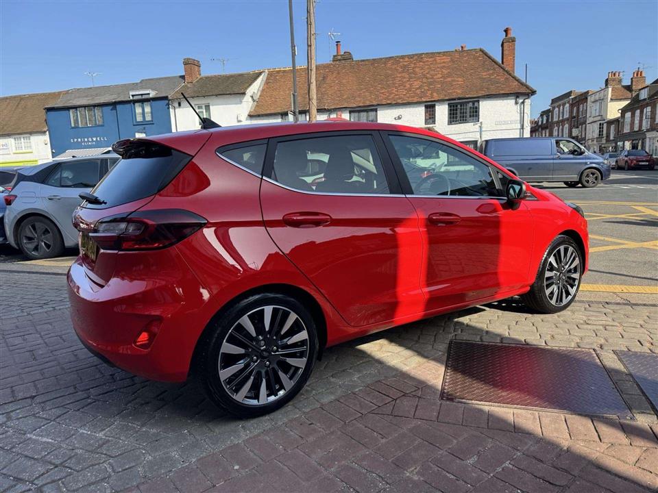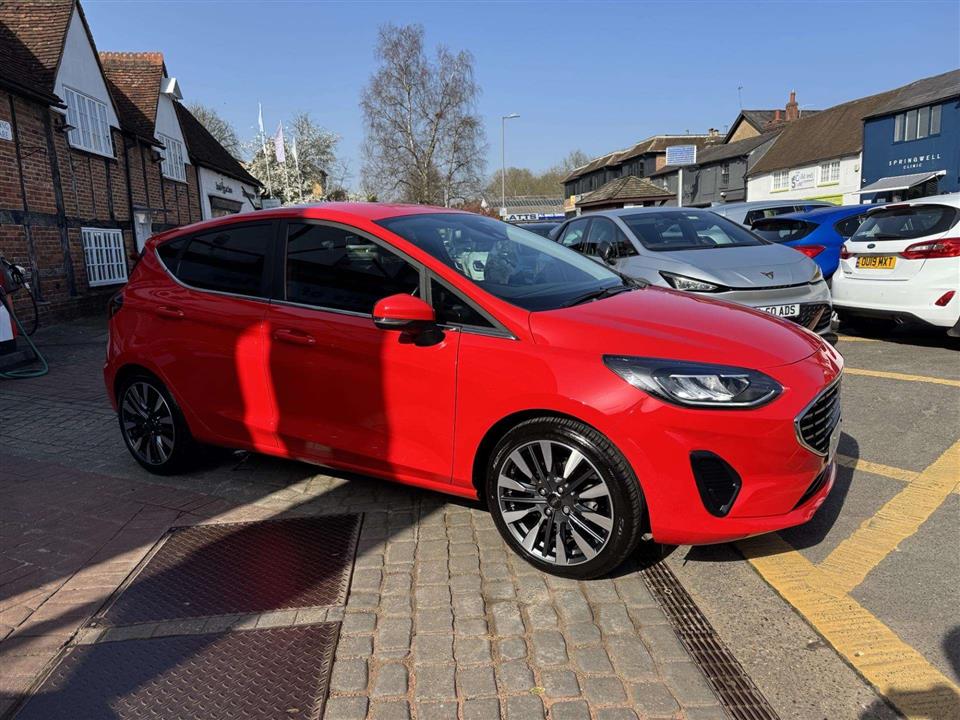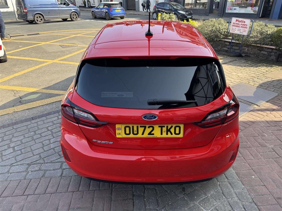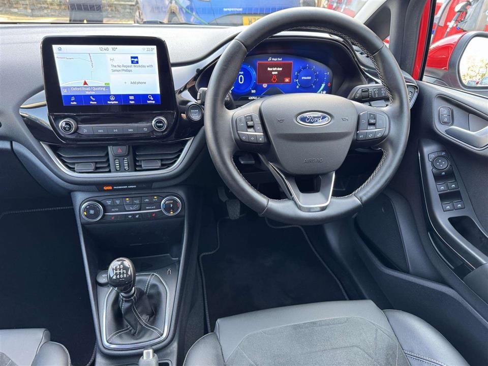 We are pleased to offer for sale this 2023 Fiesta 1.0i 100ps Titanium X 5dr finished in Race Red. This car was sold by us new to a long standing customer who has reached the end of their finance agreement and part exchanged it for another car. This car benefits from a full Ford service history with ourselves and wll come with Ford's breakdown assistance for added peace of mind. Equipped with advanced features, this Fiesta ensures comfort and convenience. Enjoy the ease of Electronic Automatic Temperature Control for perfect cabin climate, and seamless smartphone integration with Ford SYNC 3 satellite Navigation, supporting both Android Auto and Apple CarPlay. The Ford Key Free System allows for effortless keyless entry and start, while rear parking distance sensors and a rear view camera aid in manoeuvring. Illumination is provided by LED headlights, complete with daytime running lights and integrated fog lights, enhancing visibility in all conditions.