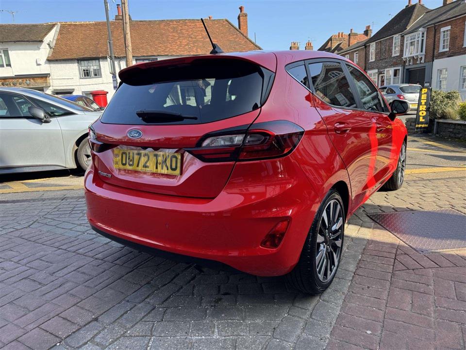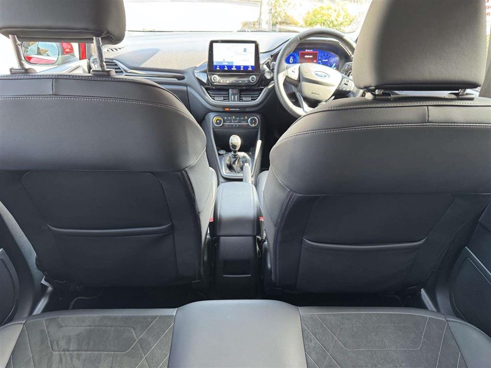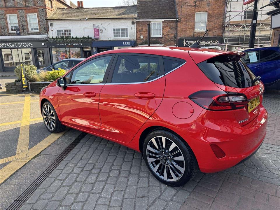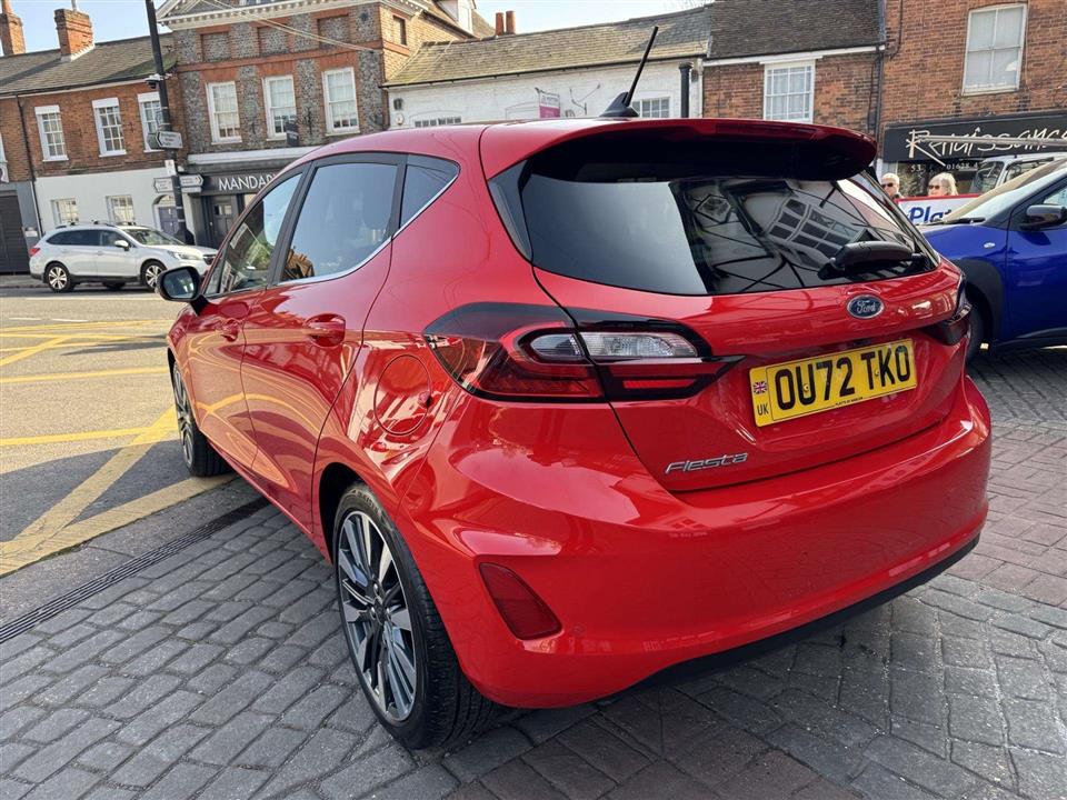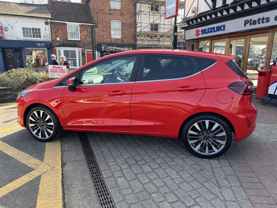 We are pleased to offer for sale this 2023 Fiesta 1.0i 100ps Titanium X 5dr finished in Race Red. This car was sold by us new to a long standing customer who has reached the end of their finance agreement and part exchanged it for another car. This car benefits from a full Ford service history with ourselves and wll come with Ford's breakdown assistance for added peace of mind. Equipped with advanced features, this Fiesta ensures comfort and convenience. Enjoy the ease of Electronic Automatic Temperature Control for perfect cabin climate, and seamless smartphone integration with Ford SYNC 3 satellite Navigation, supporting both Android Auto and Apple CarPlay. The Ford Key Free System allows for effortless keyless entry and start, while rear parking distance sensors and a rear view camera aid in manoeuvring. Illumination is provided by LED headlights, complete with daytime running lights and integrated fog lights, enhancing visibility in all conditions.