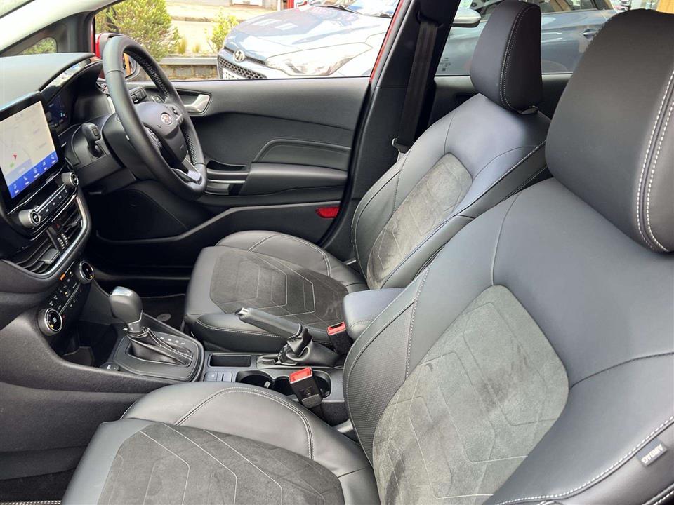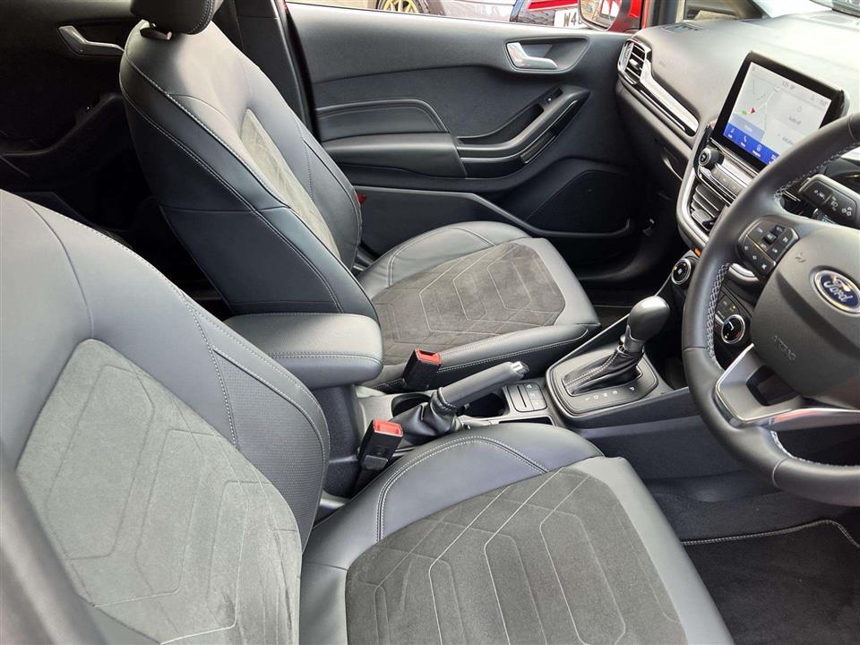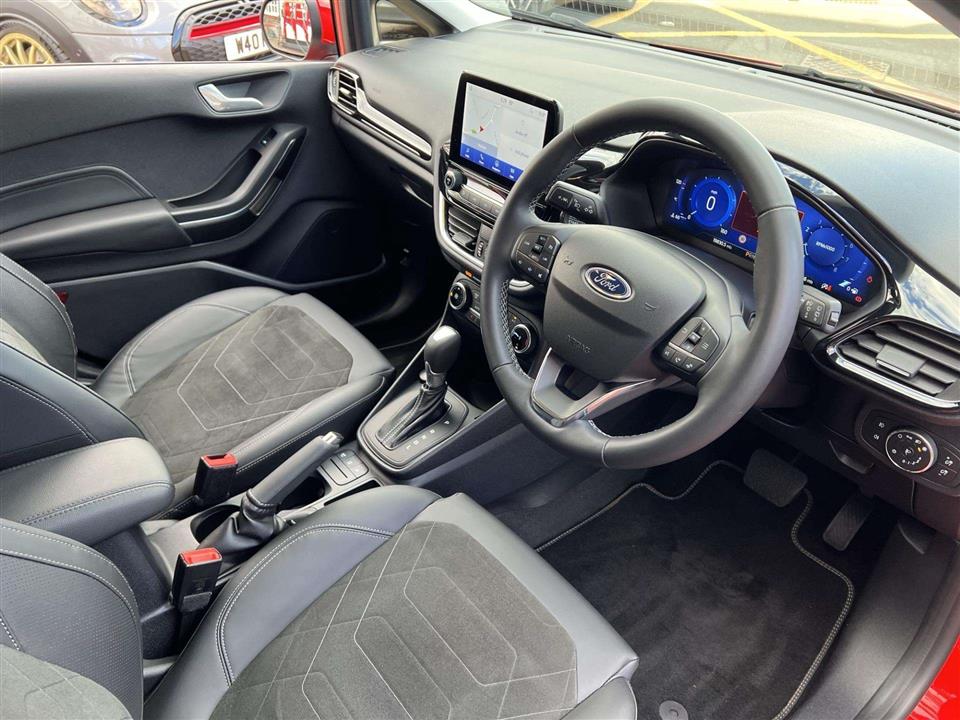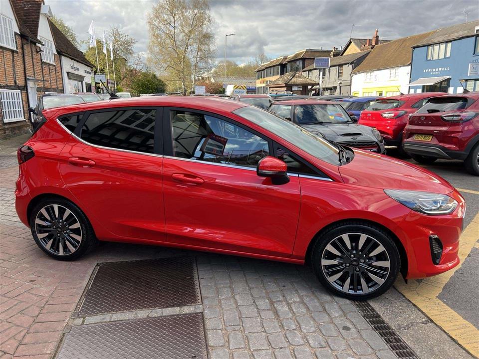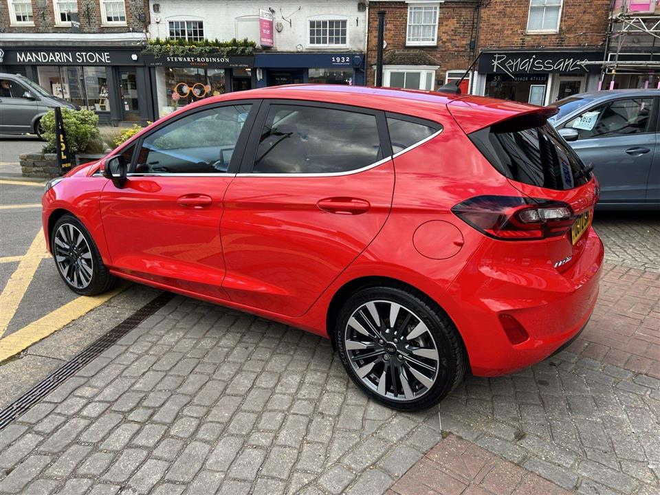 This 2023 Ford Fiesta Titanium X Automatic was supplied new by us to the one previous private owner.This superb example features a responsive 1.0L 125 ps Petrol mild Hybrid engine, meeting Euro 6 emission standards, and boasts the desirable Titanium X trim. This particular mode comes equipped with Sat Nav, a comprehensive Parking Pack, including front sensors and a rear view camera, making manoeuvring effortless. Further enhancing its appeal are the advanced Matrix LED headlights with signature LED daytime running lights and integrated sequential indicators, alongside LED fog lights. The Winter Pack adds further comfort with heated seats and a heated steering wheel. Experience the dynamic performance of this Fiesta, with an impressive 0-62mph acceleration time of just 9.6 seconds. These highlights demonstrate how this vehicle offers a superior automatic driving experience compared to others in its class.