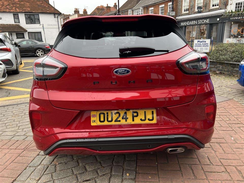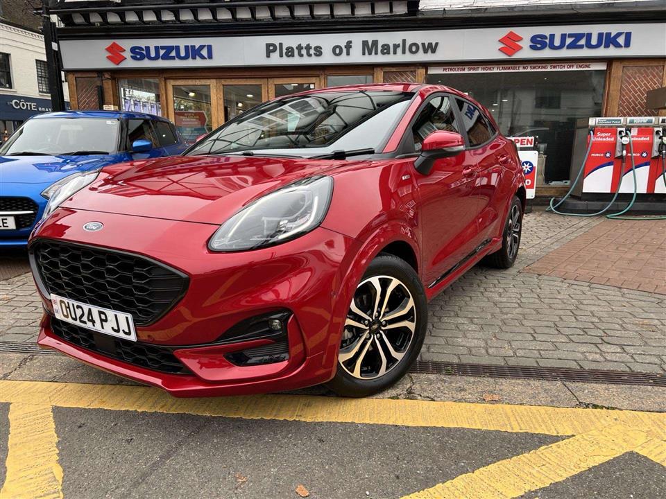 We are pleased to offer for sale our own Ford Puma 1.0i 125ps ST Line Automatic finished in metallic Fantastic Red. We have owned the car from new and has been used by our staff and Platts customers. We have also just serviced the car and issued Ford's breakdown assistance for added peace of mind. This stylish compact SUV features a responsive 1.0L petrol hybrid engine, meeting Euro 6 emissions standards. The ST Line trim enhances its sporty appeal, and it comes equipped with a comprehensive Driver Assistance Pack, including Blind Spot Assistance, Adaptive Cruise Control, and front and rear parking sensors with a rear camera. Inside, you'll find manual air conditioning and the Ford SYNC 3 Navigation system, complete with Android Auto, Apple CarPlay, and Bluetooth connectivity for seamless integration of your devices.