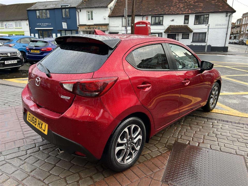 This 2018 Mazda2 SKYACTIV-G GT Sport Nav+ has one owner from new and offers exceptionally low mileage for its age at only 40932 miles. This stylish hatchback is powered by an efficient 1.5 litre petrol engine, meeting Euro 6 emissions standards and contributing to its low CO2 emissions. The GT Sport Nav+ trim level ensures a well equipped driving experience, featuring an integrated Bluetooth system for seamless connectivity, and striking LED headlights with distinctive LED daytime running lights. Further enhancing convenience and safety, this Mazda2 includes rear parking sensors and a reversing camera to assist with manoeuvring in tight spaces plus a head up display for added convenience. During colder months, the front seats are heated. The performance of this model is also noteworthy, achieving 0-62mph in a brisk 9.7 seconds. These combined attributes, including its low mileage, single owner history, and desirable features, demonstrate that this Mazda2 offers an excellent package.