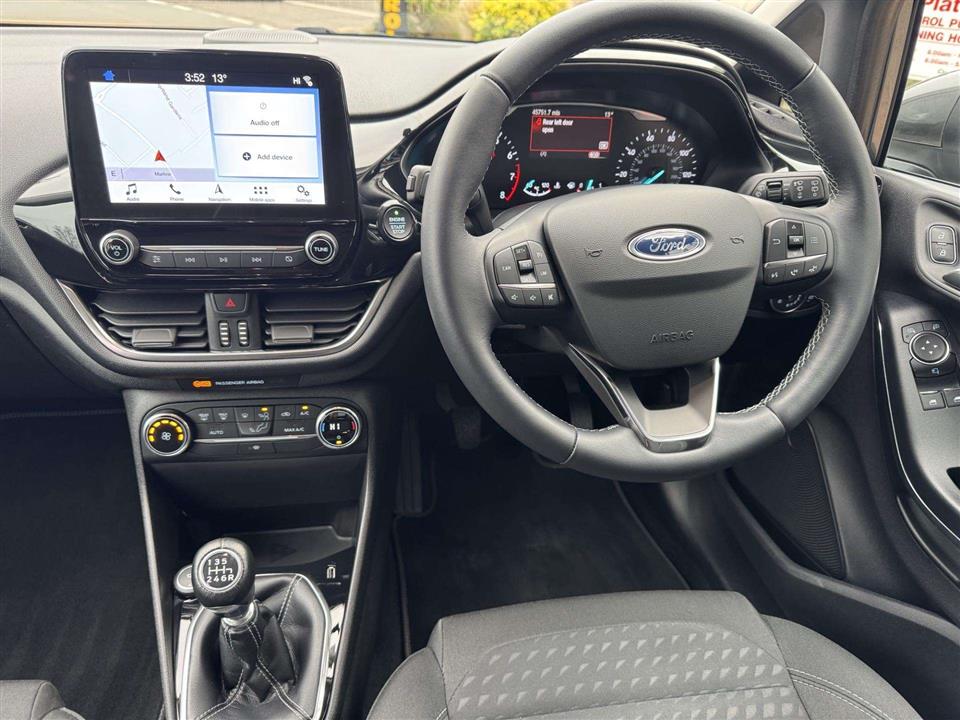 This 2018 Ford Fiesta Titanium boasts a full Ford service history, offering excellent provenance for this popular model. Powered by an efficient 1.0L petrol engine and meeting Euro 6 emissions standards, this Fiesta is a smart choice. It comes equipped with a Ford Navigation System featuring Ford SYNC 3, which seamlessly integrates Apple CarPlay and Android Auto, alongside FordPass Connect for enhanced connectivity. Comfort is assured with Electronic Automatic Temperature Control air conditioning, and convenience is further boosted by automatic on-off headlights, including automatic high beam functionality.