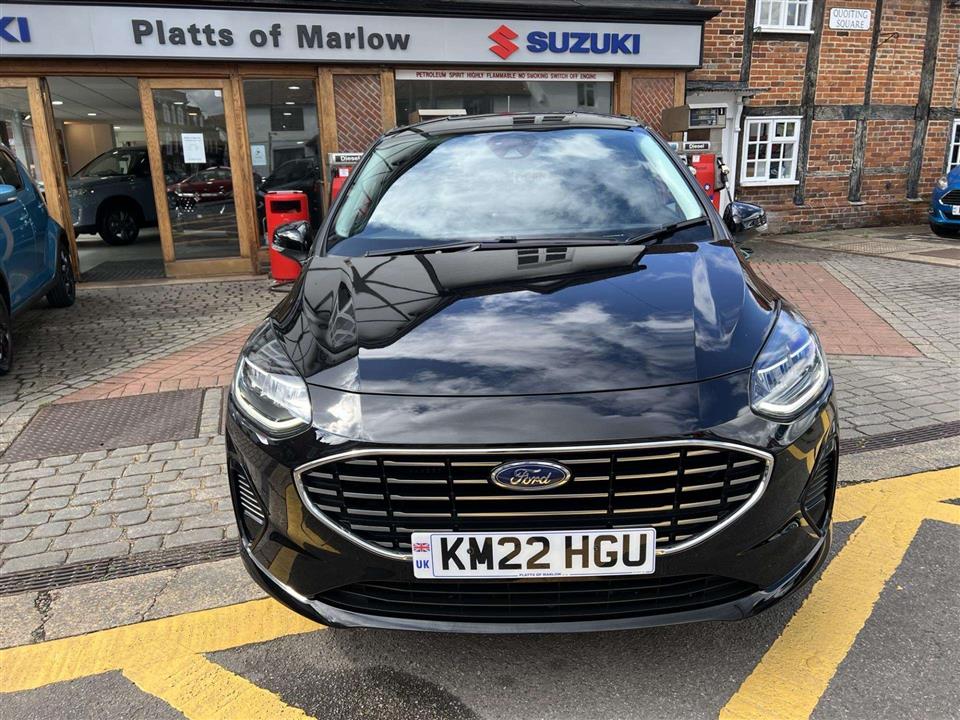 We are pleased to offer for sale this 2022 Ford Fiesta 1.0i 100ps Titanium which boasts a full service history and has had only one private owner from new. This stylish hatchback is powered by an efficient 1.0 litre petrol engine and meets Euro 6 emissions standards, contributing to its low CO2 emissions. Inside, you'll find the user friendly SYNC 3 system with both Android Auto and Apple CarPlay, keeping you connected and on the right path. The Titanium trim also includes manual air conditioning for your comfort and automatic LED headlights with integrated daytime running lights and fog lights for enhanced visibility. The car also benefits from a full service history and will come with Ford's breakdown cover for added peace of mind. So why not give our family run dealership a call on 01628 894180 to book a test drive?