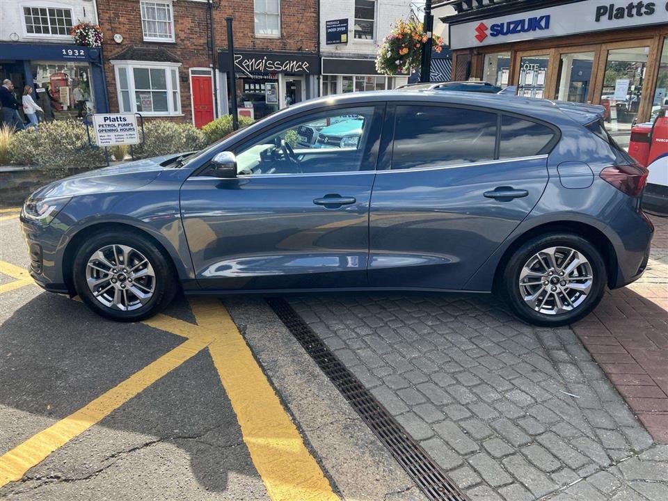 This 2022 Ford Focus 1.0i 125ps Titanium is a superb example, having had only one private owner since new. We have purchased the car directly from the previous owner who has decided to change to an electric car due to working from home. The car was also serviced by the supplying Ford dealer and we will issue Ford's breakdown cover for added peace of mind while also carrying out the cars first MOT. As a Euro 6 compliant vehicle, it features a responsive 1.0 litre petrol engine and is presented in the well appointed Titanium trim. Inside, you'll find the convenience of DEATC Dual Zone Electronic Automatic Temperature Control, ensuring comfort for all occupants. The Focus also boasts full fixed LED headlights with LED Daytime Running Lights, and automatic on-off functionality for effortless visibility. Parking is made simpler with front and rear parking sensors, and for seamless connectivity and navigation, it includes Ford SYNC4 with a generous 13.2 inch touchscreen.