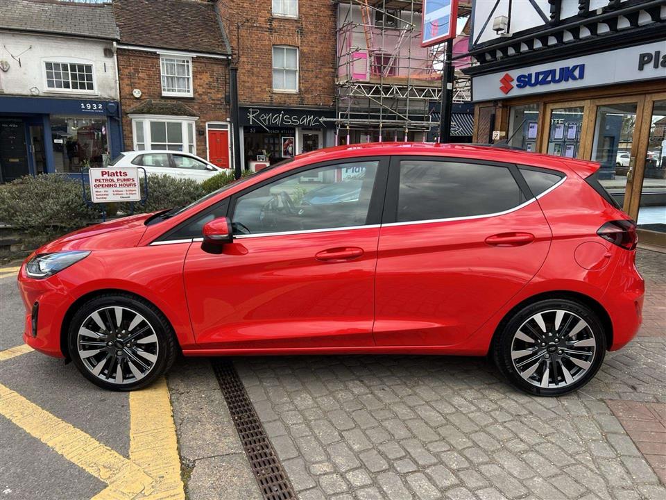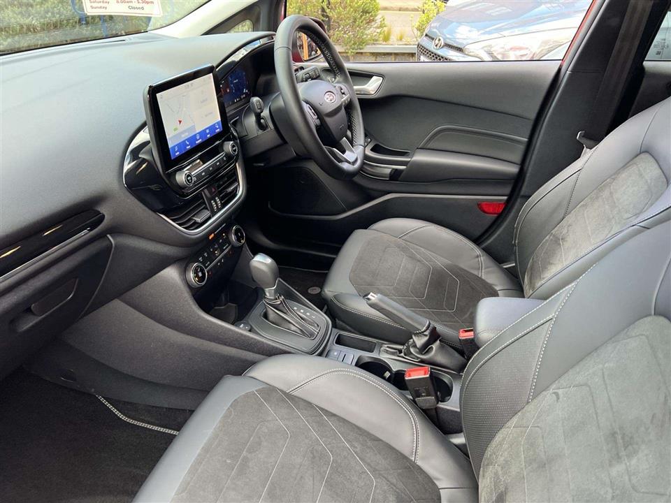 This 2023 Ford Fiesta Titanium X Automatic was supplied new by us to the one previous private owner.This superb example features a responsive 1.0L 125 ps Petrol mild Hybrid engine, meeting Euro 6 emission standards, and boasts the desirable Titanium X trim. This particular mode comes equipped with Sat Nav, a comprehensive Parking Pack, including front sensors and a rear view camera, making manoeuvring effortless. Further enhancing its appeal are the advanced Matrix LED headlights with signature LED daytime running lights and integrated sequential indicators, alongside LED fog lights. The Winter Pack adds further comfort with heated seats and a heated steering wheel. Experience the dynamic performance of this Fiesta, with an impressive 0-62mph acceleration time of just 9.6 seconds. These highlights demonstrate how this vehicle offers a superior automatic driving experience compared to others in its class.