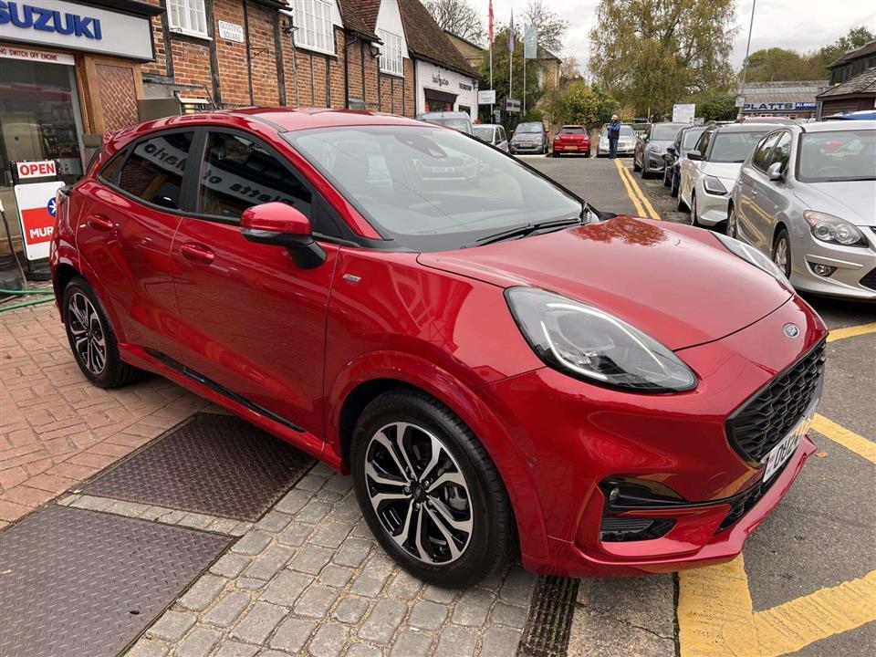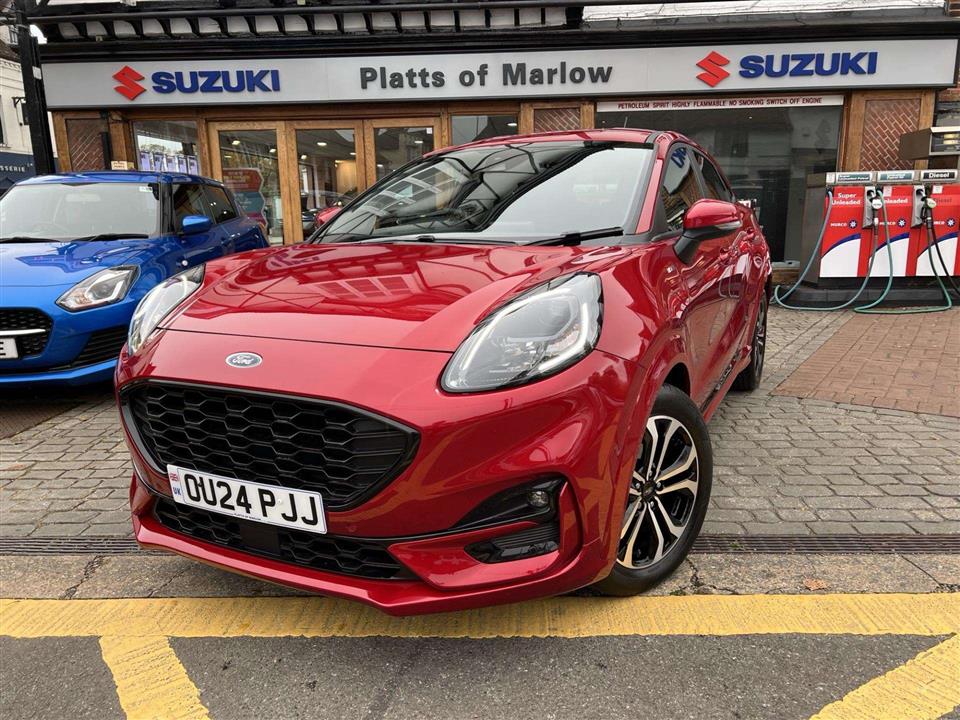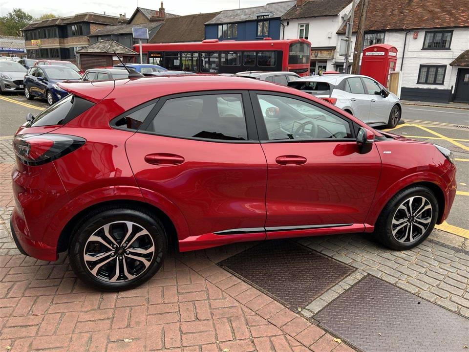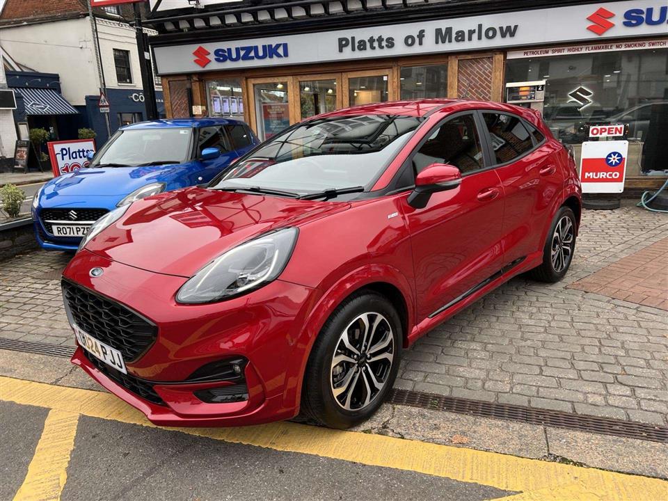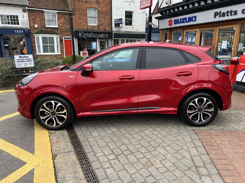 We are pleased to offer for sale our own Ford Puma 1.0i 125ps ST Line Automatic finished in metallic Fantastic Red. We have owned the car from new and has been used by our staff and Platts customers. We have also just serviced the car and issued Ford's breakdown assistance for added peace of mind. This stylish compact SUV features a responsive 1.0L petrol hybrid engine, meeting Euro 6 emissions standards. The ST Line trim enhances its sporty appeal, and it comes equipped with a comprehensive Driver Assistance Pack, including Blind Spot Assistance, Adaptive Cruise Control, and front and rear parking sensors with a rear camera. Inside, you'll find manual air conditioning and the Ford SYNC 3 Navigation system, complete with Android Auto, Apple CarPlay, and Bluetooth connectivity for seamless integration of your devices.