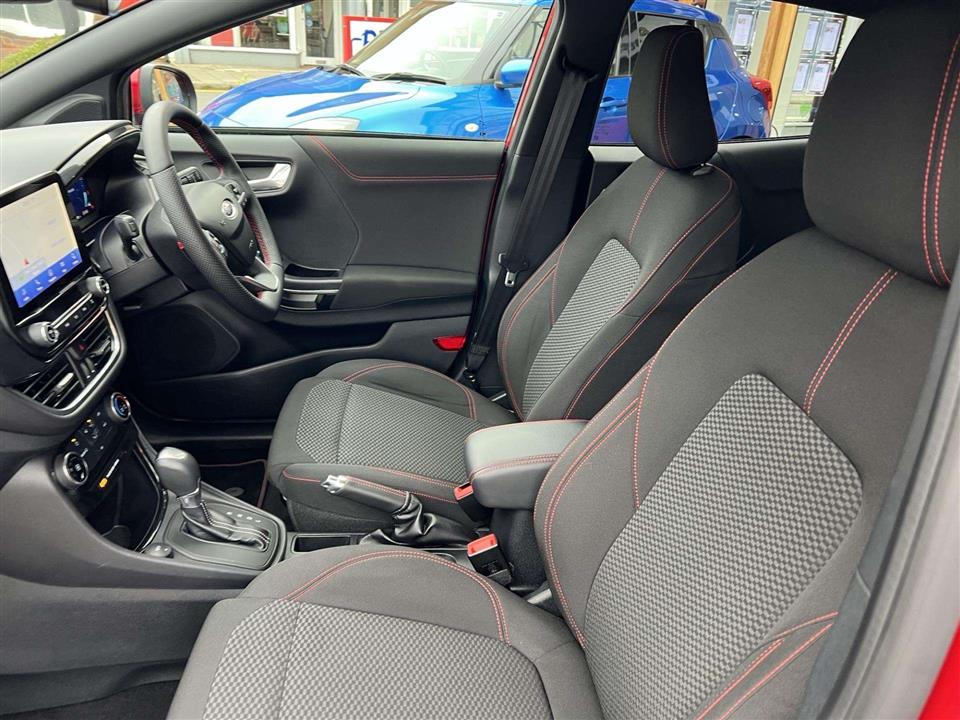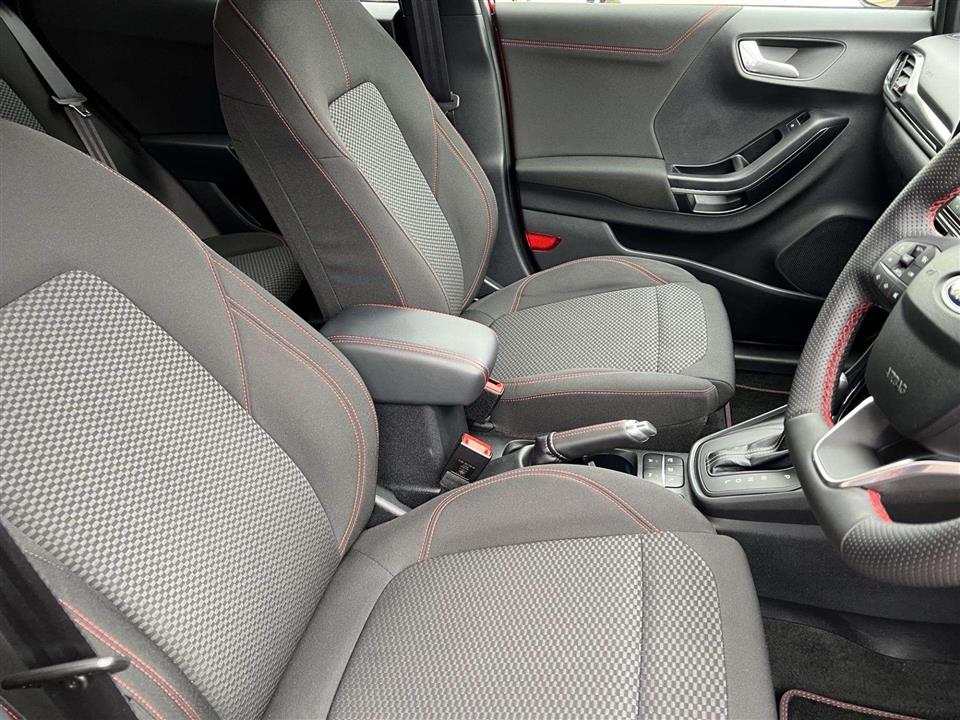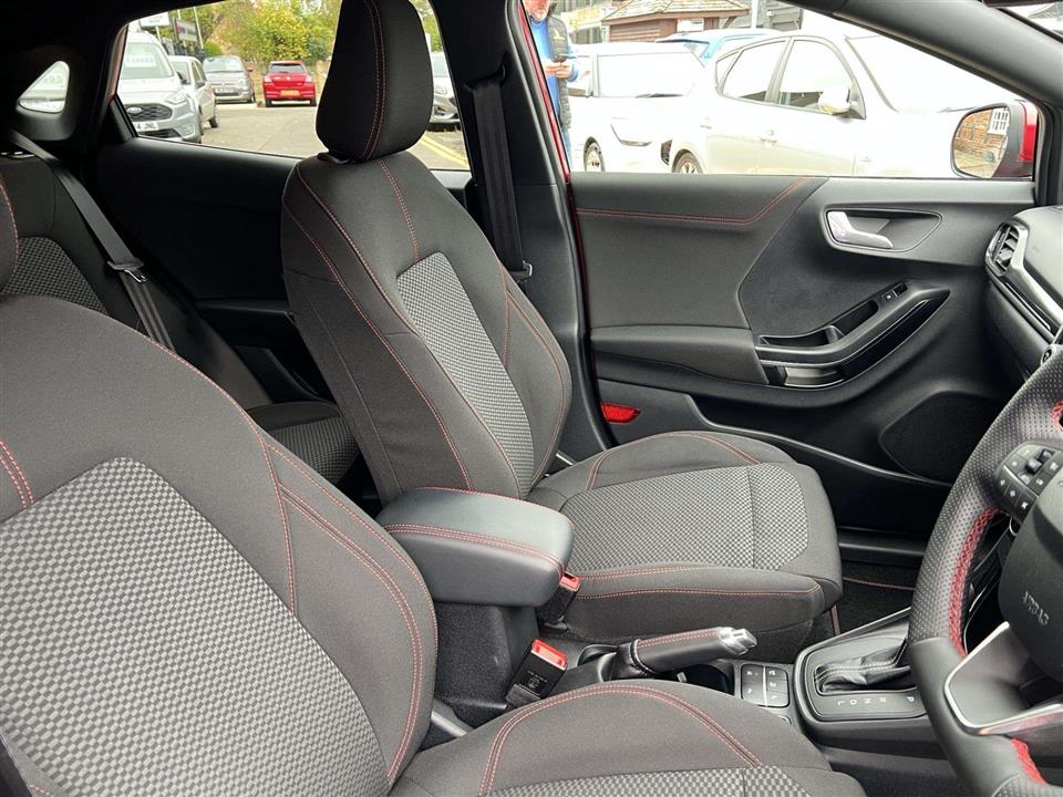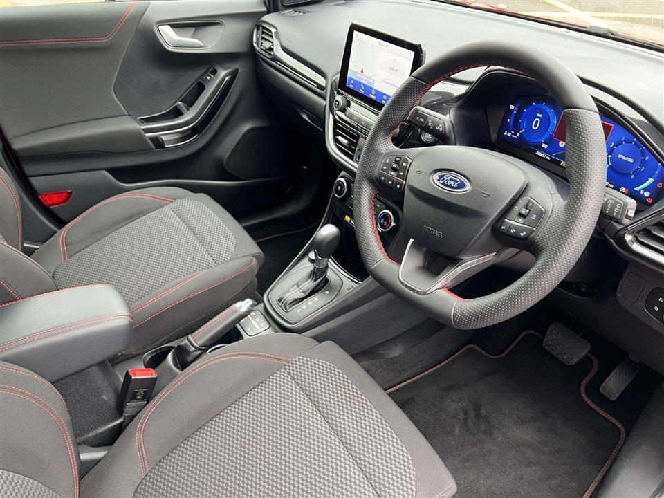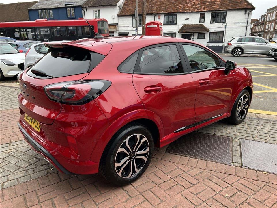 We are pleased to offer for sale our own Ford Puma 1.0i 125ps ST Line Automatic finished in metallic Fantastic Red. We have owned the car from new and has been used by our staff and Platts customers. We have also just serviced the car and issued Ford's breakdown assistance for added peace of mind. This stylish compact SUV features a responsive 1.0L petrol hybrid engine, meeting Euro 6 emissions standards. The ST Line trim enhances its sporty appeal, and it comes equipped with a comprehensive Driver Assistance Pack, including Blind Spot Assistance, Adaptive Cruise Control, and front and rear parking sensors with a rear camera. Inside, you'll find manual air conditioning and the Ford SYNC 3 Navigation system, complete with Android Auto, Apple CarPlay, and Bluetooth connectivity for seamless integration of your devices.