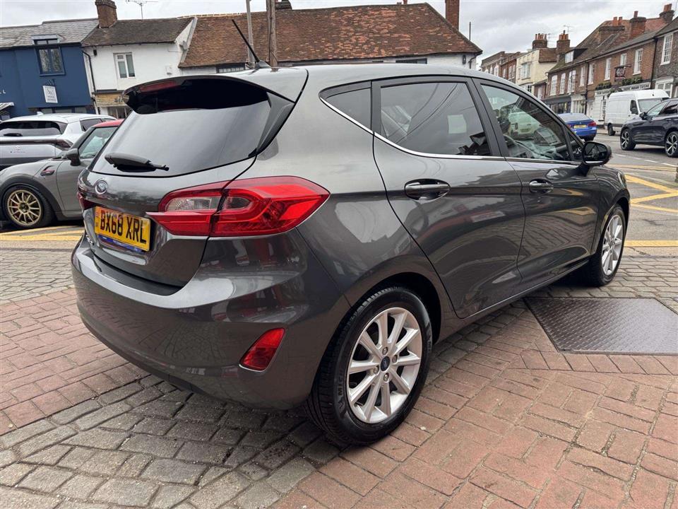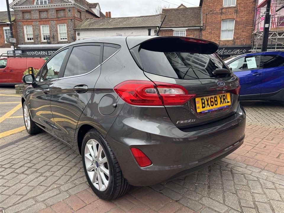 This 2018 Ford Fiesta Titanium boasts a full Ford service history, offering excellent provenance for this popular model. Powered by an efficient 1.0L petrol engine and meeting Euro 6 emissions standards, this Fiesta is a smart choice. It comes equipped with a Ford Navigation System featuring Ford SYNC 3, which seamlessly integrates Apple CarPlay and Android Auto, alongside FordPass Connect for enhanced connectivity. Comfort is assured with Electronic Automatic Temperature Control air conditioning, and convenience is further boosted by automatic on-off headlights, including automatic high beam functionality.