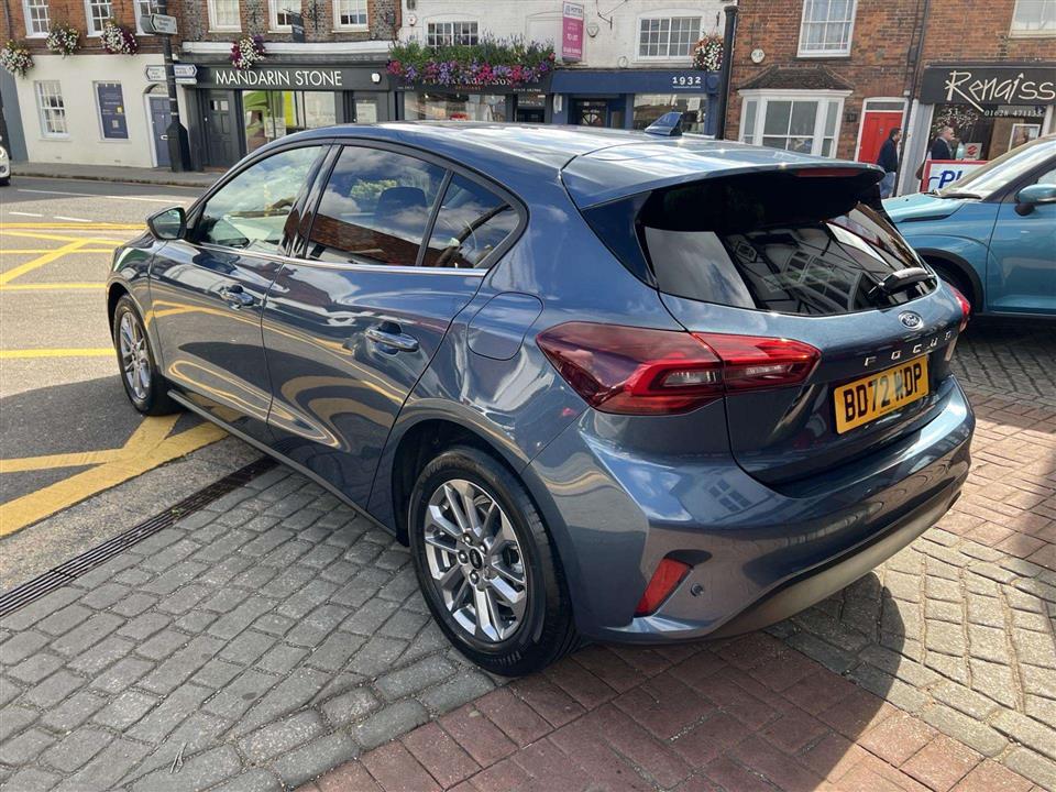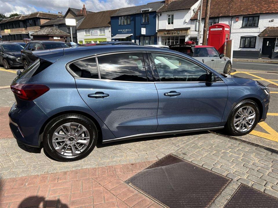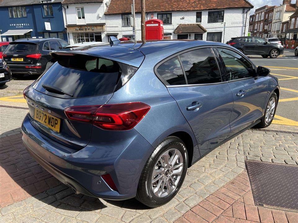 This 2022 Ford Focus 1.0i 125ps Titanium is a superb example, having had only one private owner since new. We have purchased the car directly from the previous owner who has decided to change to an electric car due to working from home. The car was also serviced by the supplying Ford dealer and we will issue Ford's breakdown cover for added peace of mind while also carrying out the cars first MOT. As a Euro 6 compliant vehicle, it features a responsive 1.0 litre petrol engine and is presented in the well appointed Titanium trim. Inside, you'll find the convenience of DEATC Dual Zone Electronic Automatic Temperature Control, ensuring comfort for all occupants. The Focus also boasts full fixed LED headlights with LED Daytime Running Lights, and automatic on-off functionality for effortless visibility. Parking is made simpler with front and rear parking sensors, and for seamless connectivity and navigation, it includes Ford SYNC4 with a generous 13.2 inch touchscreen.