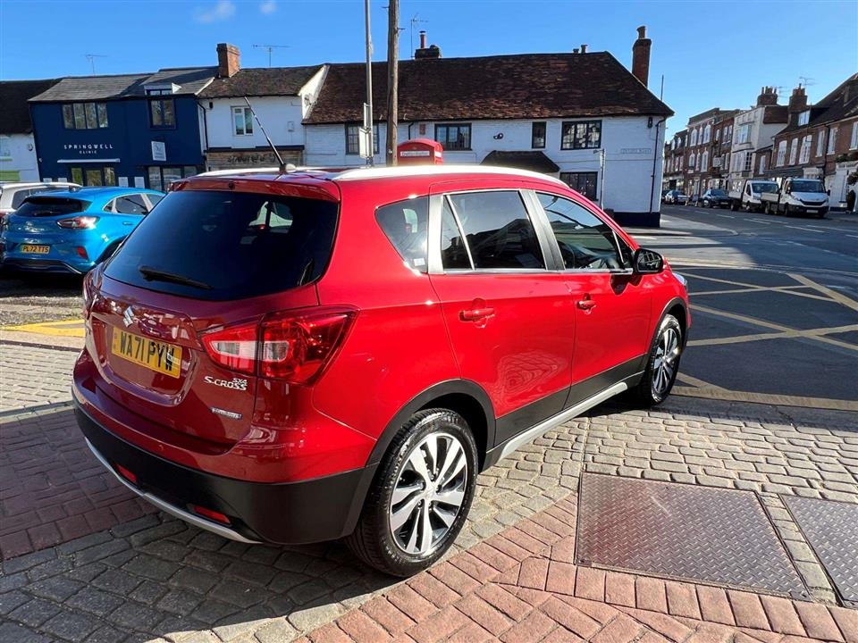 We are pleased to offer for sale this 2021 Suzuki SX4 S-Cross SZ-T finished in Energetic Pearl Red which we purchased directly from the previous owner who has now taken a company car. The car benefits from a full Suzuki service history which includes us carrying out the cars next service ready for the new owner. This 1.4 litre petrol hybrid model is presented in the SZ-T trim and adheres to Euro 6 emissions standards. With a remarkably low mileage of just 21,652 miles for its age, this vehicle offers a compelling combination of efficiency and advanced features. Convenience is key with keyless entry and start, allowing you to access and operate the car without fumbling for keys. Manoeuvring is made simple thanks to front and rear parking distance sensors, a rear parking camera, and parking assistance systems. Stay connected and entertained with the integrated Bluetooth system, while the dual-zone automatic air conditioning ensures a comfortable cabin temperature for all occupants.